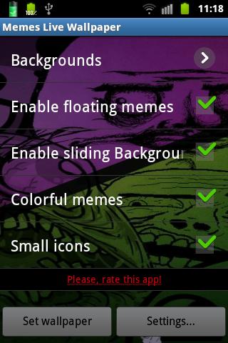 All the Internet memes are flying in this live wallpaper! You will find me gusta, troll face, yao ming, derp and many others! And you can choose the background image!