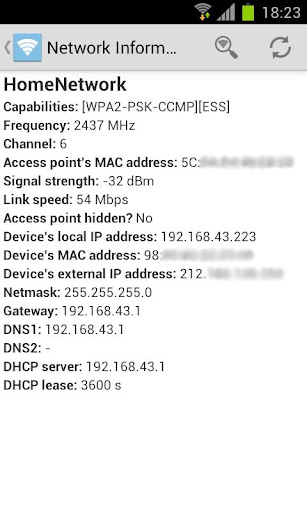 * Network Information (ROOT): Information about the connected network like MAC and IP addresses, gateway etc